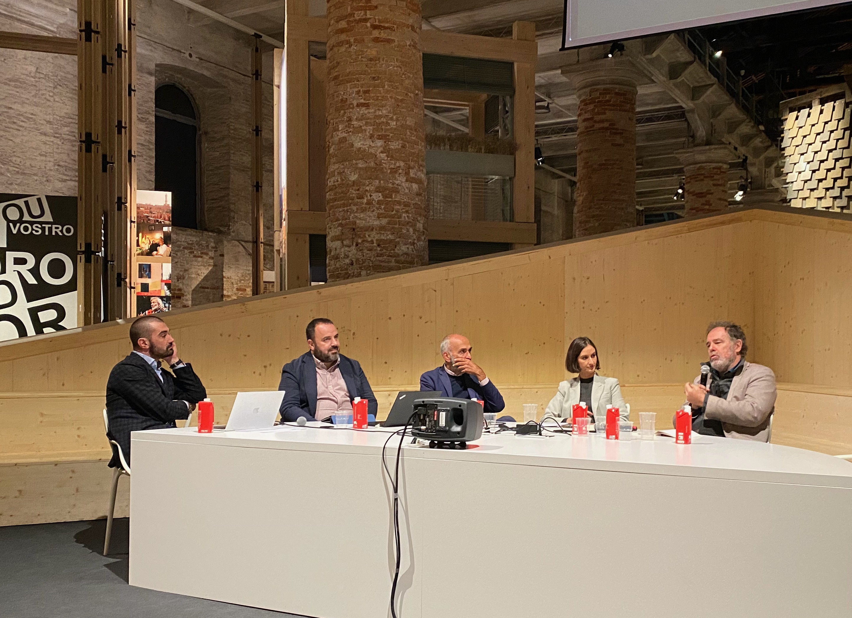 Seconda tavola rotonda del workshop "L'Intelligenza architettonica è Plurale. Il progetto architettonico come opera corale", tenutosi il 22 ottobre allo Speakers' Corner delle Corderie dell'Arsenale come parte del GENS Public Programme della Biennale Architettura 2025.